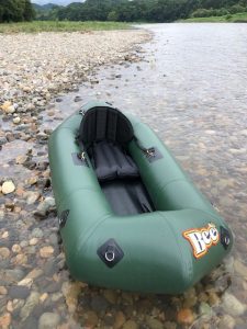 特徴:流水、静水での安定性、フィールドに応じて湖用フィンとダウンリバー用フィンを標準装備。フィンは着脱式になり各フィールドに合わせて使用。艇低には強化PVCを使用しダウンリバー中の川底や岩などによる破損を軽減。