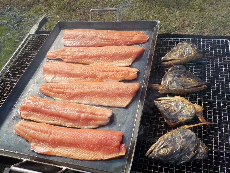 那珂川のサケまるごと鉄板焼きBBQランチ付12:30~食事をお楽しみください。