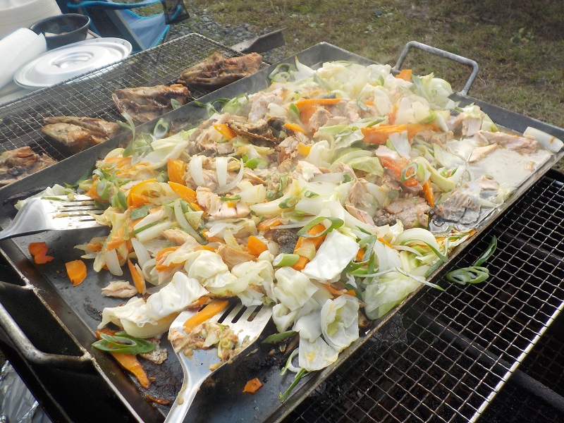 BBQランチ・・・那珂川産サーモンBBQ 地産朝採れ野菜、スープ付
